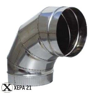 Коляно за димоотвод 90°- ф130 от инокс се използва за смяна посоката на комина. Подходящо за камини и печки на дърва, пелетни камини и котли за централно отопление- газови, нафтови, котли на дърва, пелети и друго твърдо гориво. Иноксовите димоотводи могат да се използват като отделен комин или връзка към съществуващ такъв. Произведено от неръждаема стомана 304 с дебелина 0,4mm което го прави силно издръжливо на корозия и високи температури.