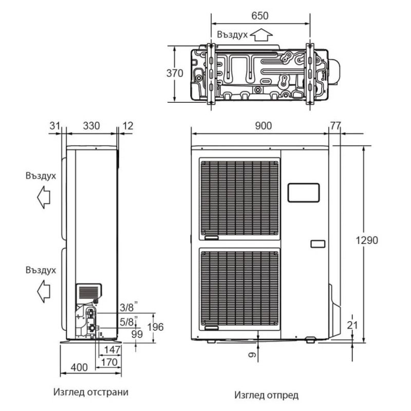 Уникален патентован коаксиален топлообменник Ефикасна работа при температура на водата до 60°С и външна температура до – 25°С Високо ефективна сплит термопомпа (работи без гликол) Подходяща за отопление и охлаждане Тих режим на работа Големият брой произведени термопомпи води до първокласен продукт на първокласна цена Цялостно сервизно обслужване на клиента – винаги на Ваше разположениеВъншно тяло: